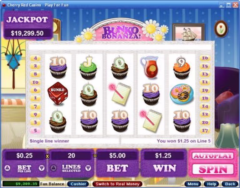 This engaging slot offers 5 reels and 20 paylines, making it accessible yet exciting. The symbols include a mix of high and low-value icons such as Notebook, Cakes, Chips, and the royal card symbols (A, K, Q, J, 10, and 9). Keep an eye out for the Bunko Dice, which serves as the scatter symbol, and the Bell, which can unlock additional winning opportunities. Each spin offers the chance to uncover winning combinations that keep the game both engaging and rewarding.